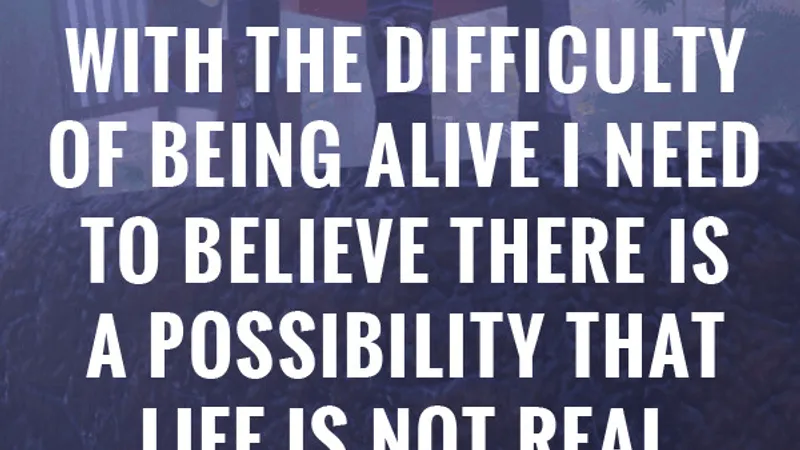 Sometimes to Deal with the Difficulty of Being Alive, I Need to Believe There Is a Possibility That Life Is Not Real.